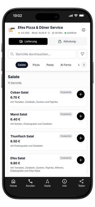 mit Tomaten, türkischer Schinken, Ananas und Eisbergsalat